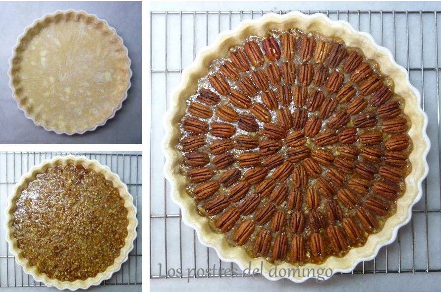 La pecan pie es una tarta típica de Estados Unidos que preparan tradicionalmente para el día de acción de gracias. Se trata de una tartaleta de pasta quebrada con un relleno a base de huevos y gran cantidad de nueces pecanas. En la forma de poner el relleno, hay dos versiones: las que ponen las nueces, picadas o enteras, como caigan y las que las ponen de forma decorativa ordenadas en círculos. Me he basado en la receta de Sally´s baking addiction