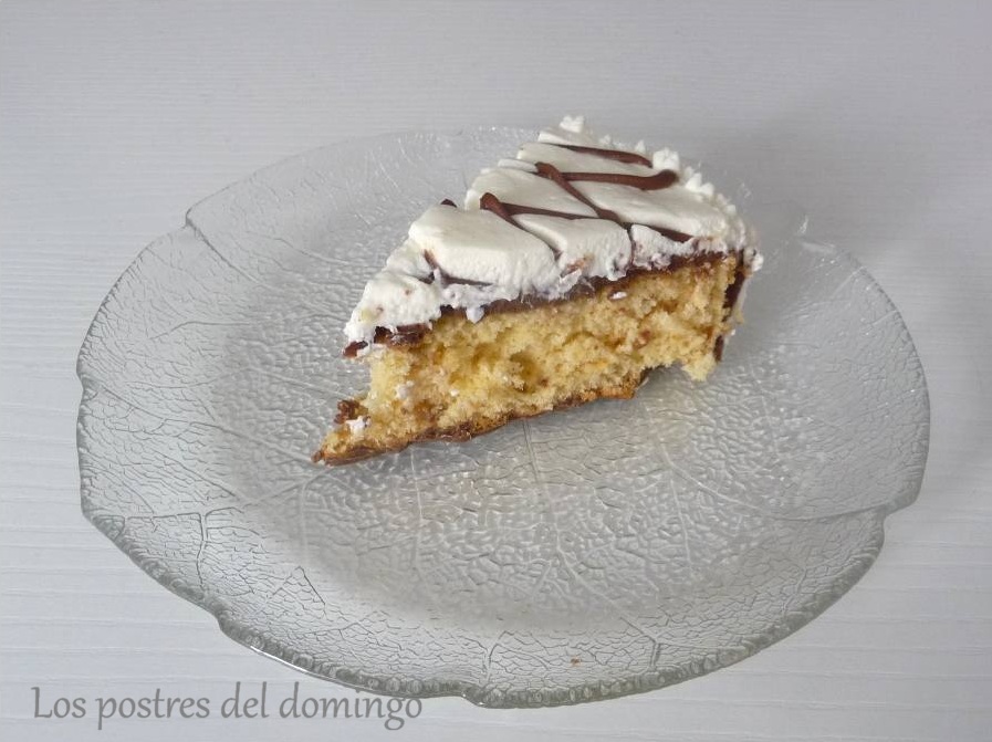 Batir las yemas con la mitad del azúcar, montar las claras con la otra mitad, añadir las yemas e incorporar la harina tamizada con la levadura con movimientos envolventes. Por último añadir la naranja picada.