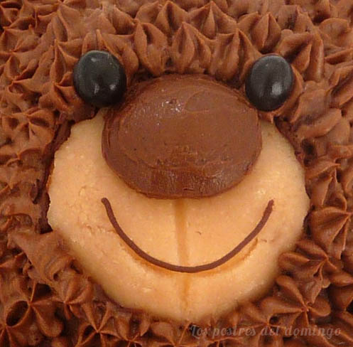 Dibujar la sonrisa con una boquilla fina y poner los ojos. Los ojos son las bolitas de regaliz que me regaló Manuela.